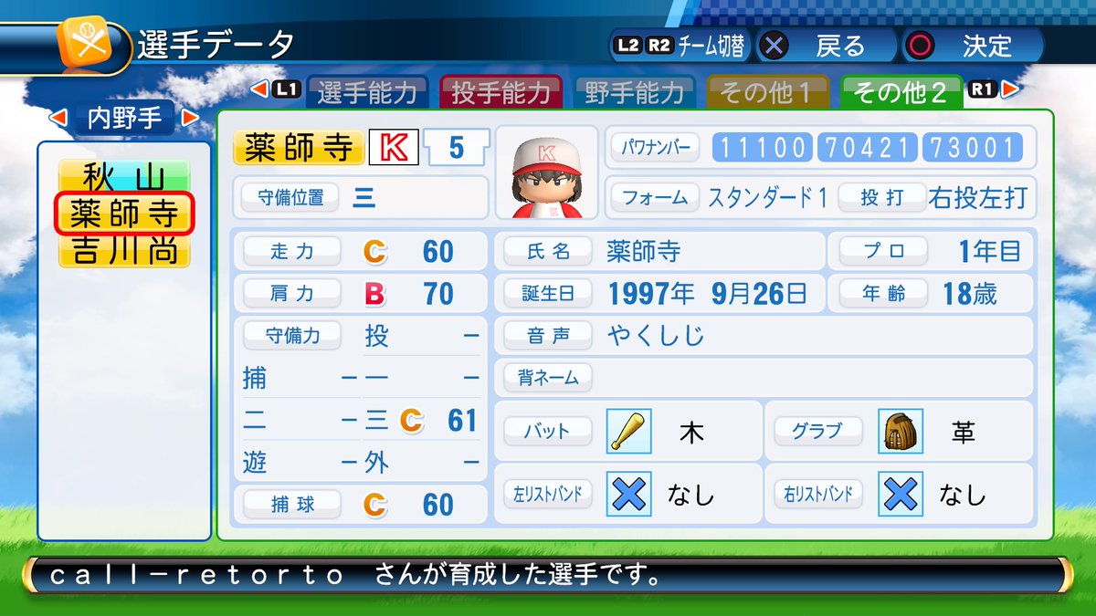 高卒とはいえ良い感じのパラメータかつ早熟なのでペナントのドラフトに放り込んでみても面白いかもしれません。