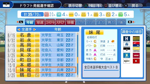 | 妹尾。Aが2つ並ぶ今ドラフト再注目。サブポジの多さも光る。 |