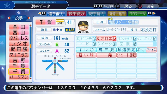 公式が161kmの千賀を用意してきたので対抗心を燃やして再作成。