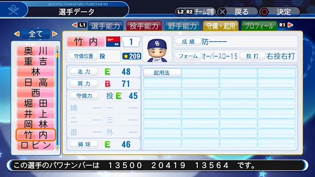 パワプロ2018 竹内龍臣 パワナンバー